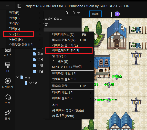 펑크랜드 스튜디오에서 이벤트 페이지를 추가/수정, 커스터마이징 할 수 있는 관리 도구입니다. 아래 스크린샷의 경로로 접근할 수 있습니다.